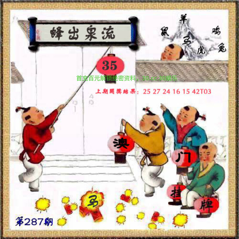 287期正版彩图挂牌:挂:35 爆:马 挂牌成语:蜂出泉流 挂牌出肖:兔鼠羊马虎鸡